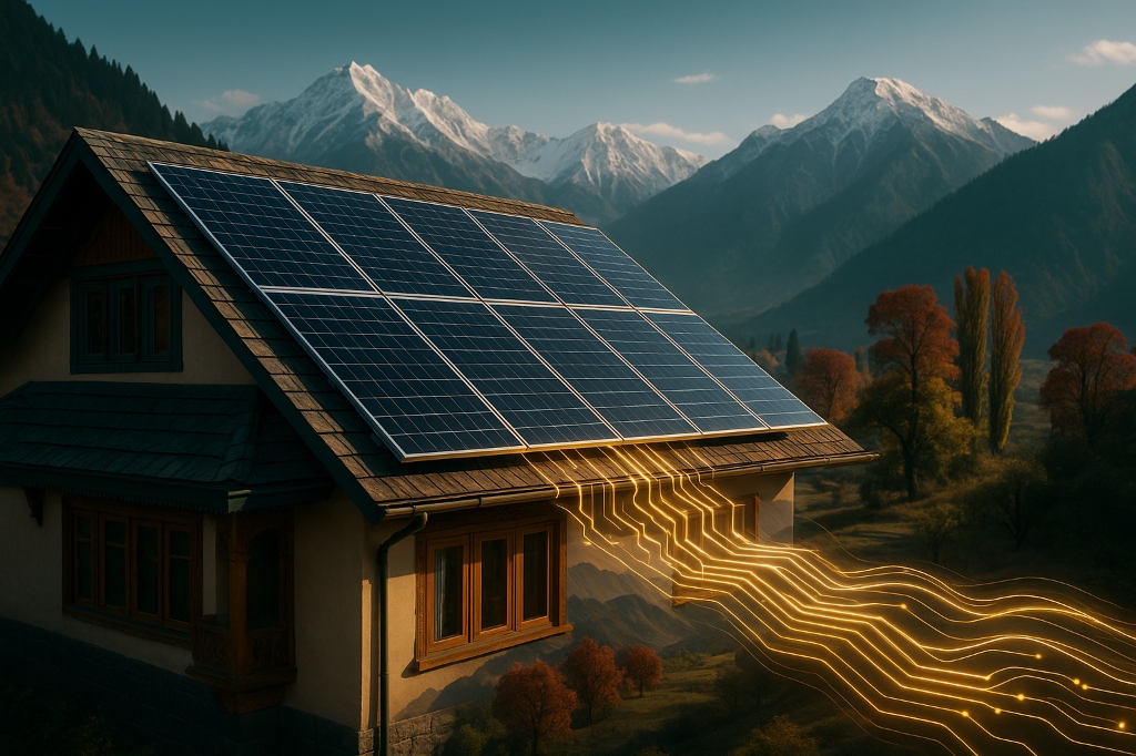 High-performance panels optimized for Kashmir's low-light and snowy conditions. Works reliably even at -10°C temperatures and heavy snowfall. Snow-shedding mounting structures included.